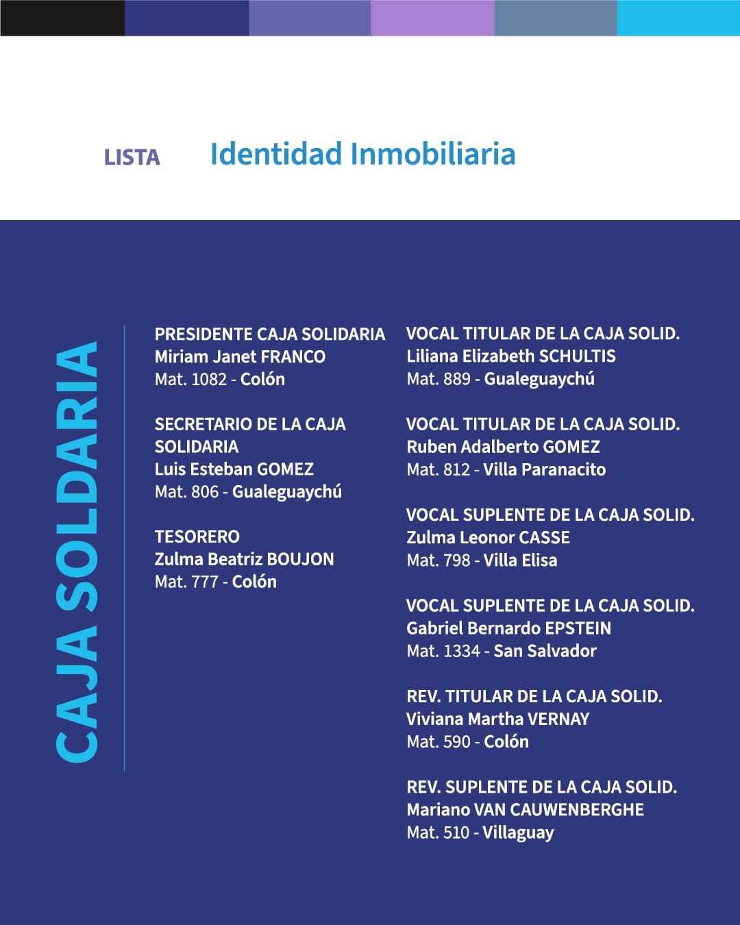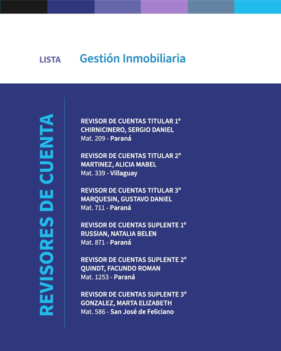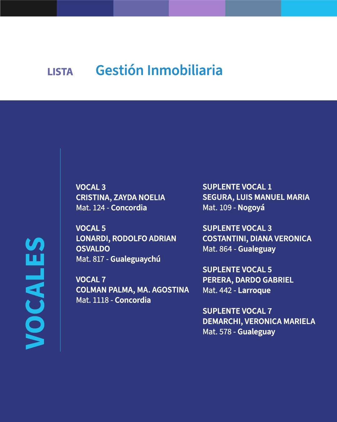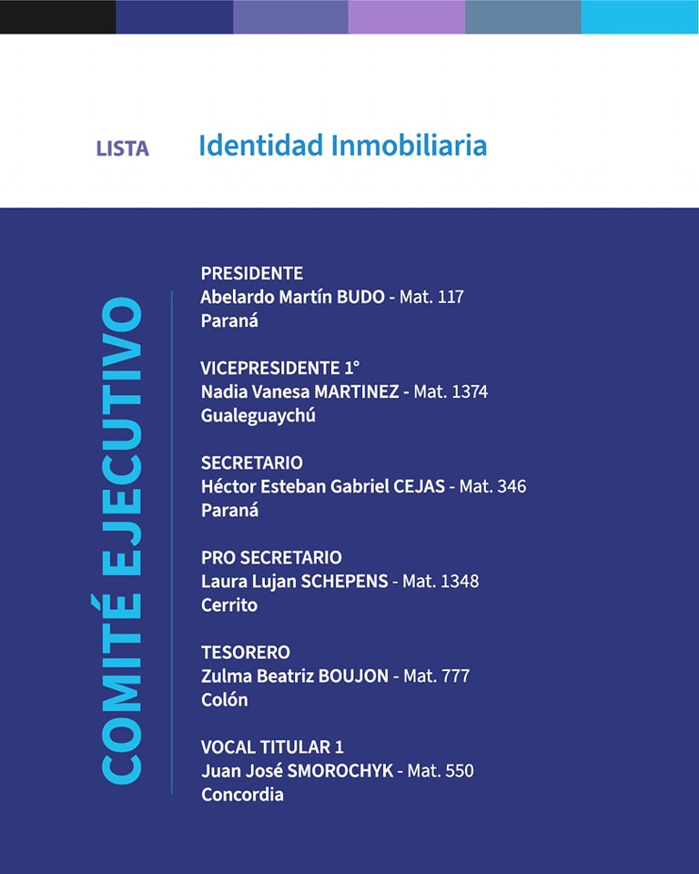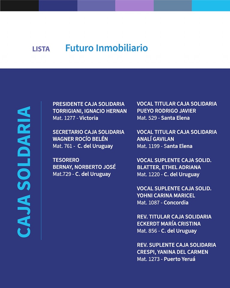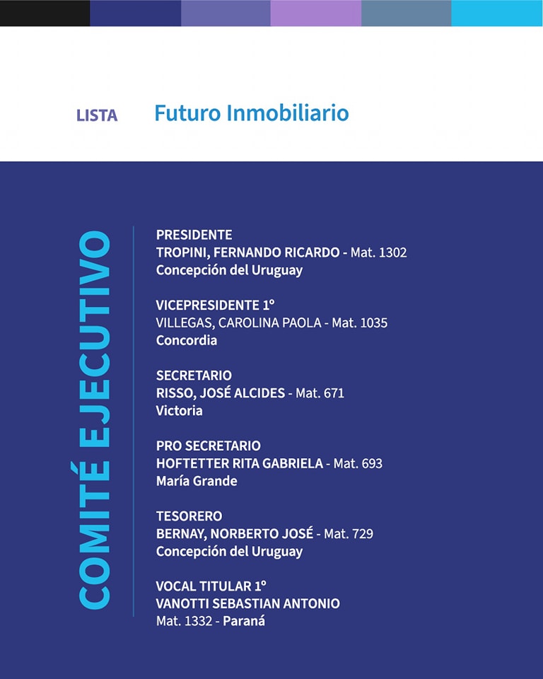 Vicepresidente 1°: Martínez Nadia, Mat. 1374, Gualeguaychú